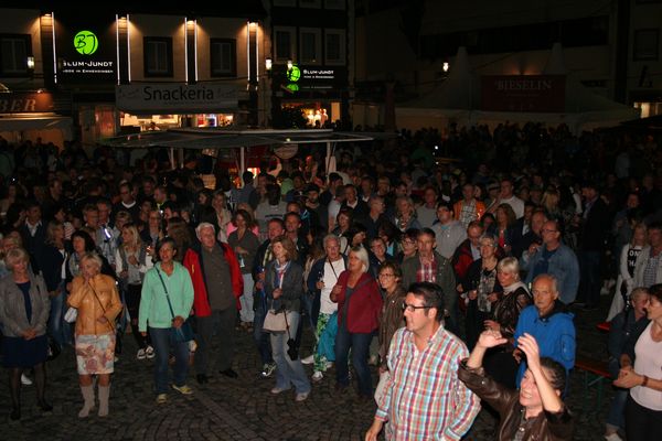 Am 15. August spielten wir beim Weinfest in Emmendingen. Kurzfristig wurde umdisponiert, so dass wir auf dem großen Marktplatz wieder spielen durften. Kurzzeitige Regenschauer wurden ignoriert. Pünktlich um 23:55 Uhr spielten wir die letzten Takte. Vielen Dank an die vielen Besucher, die trotz Regenwetter mitgefeiert haben.