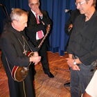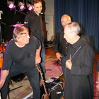 Am 06. Juli spielten wir zum ersten Mal im Kurhaus in Bad Krozingen (in geheimer Mission sozusagen). Ein ungewöhnlicher Ort für eine Rockband. Noch ungewöhnlicher war aber der Anlass. Notker Wolf (Abtprimas der benediktinischen Konföderation) hielt dort einen Vortrag. Auf Grund der Tatsache, dass er selbst Rockmusik macht, wurde ein Überraschungskonzert organisiert. Direkt nach seinem Vortrag griff er mit uns in die Saiten, und wir spielten zusammen den Klassiker "Smoke on the Water" von Deep Purple, den er sich aus unserem Programm ausgesucht hatte. Zusammen mit Deep Purple stand Notker Abt übrigens auch schon auf der Bühne! Sein Alter? 71 Jahre!